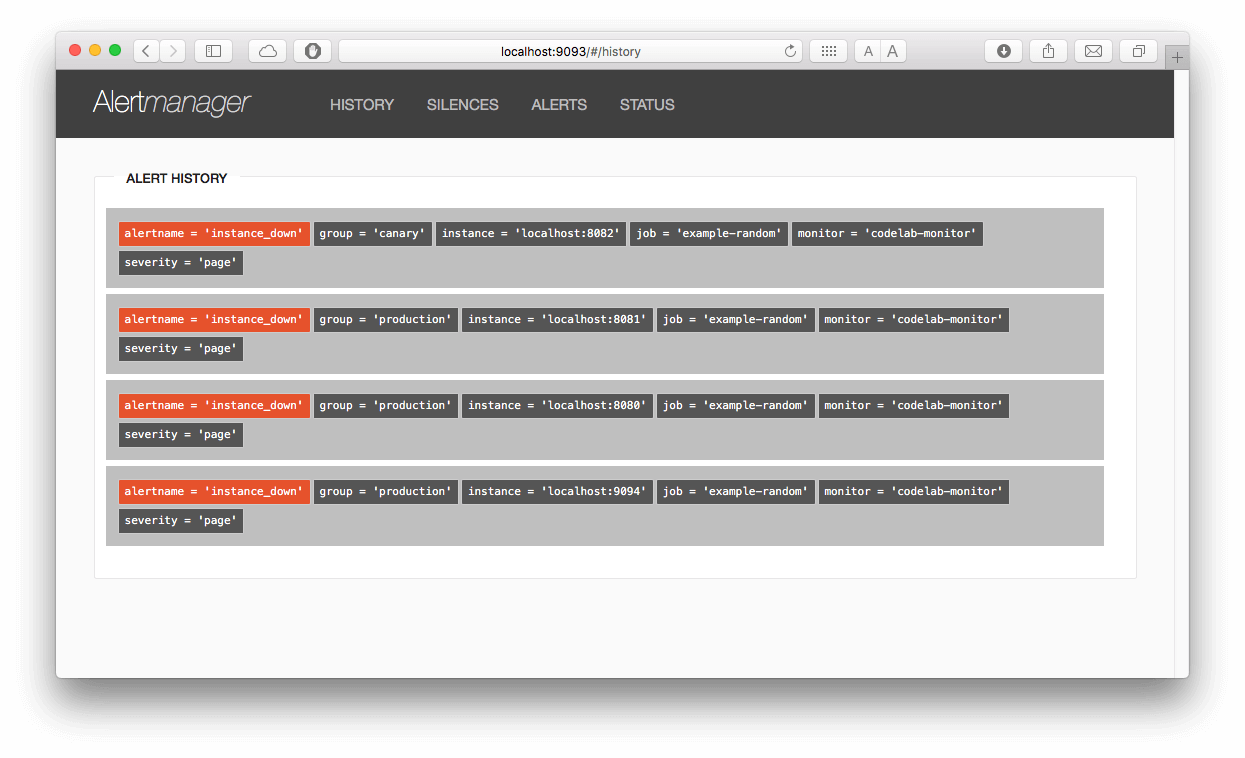 $ ./alertmanager -config.file=slack.yml # runs alertmanager with the specified configuration